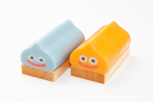 ゲームで小田原城(神奈川県小田原市)に行くともらえる「おみやげ(スライムかまぼこ)」を、創業150年余の「鈴廣かまぼこ」との共同開発で再現しました。スライムの着色には自然由来のものを使用し(スライム:クチナシ、スライムベス:パプリカ)、保存料や科学的に精製した調味料、添加物は不使用。