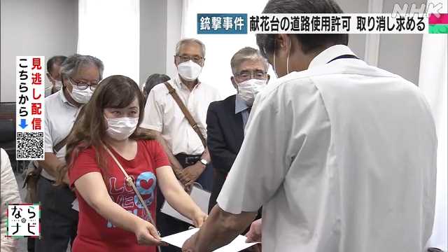 「献花台が設置されるとトラブルや交通渋滞のもとになるとして自民党奈良県連の有志などでつくる団体から申請されていた道路使用の許可を取り消す要望書」