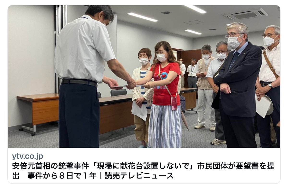 安倍元総理大臣が銃撃された事件から今月(7月)8日で1年になるのにあわせて、奈良市の現場付近に献花台が設置されることをめぐり、県内の市民団体から奈良市長に対して献花台を設置するための道路使用の許可を取り消すよう求める要望書が提出されました。