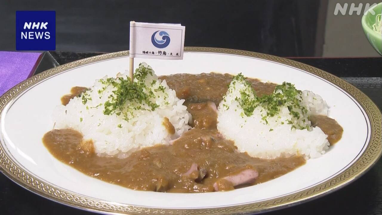 ごはんを竹島そっくりに「竹島海鮮カレー」島根県庁の食堂で