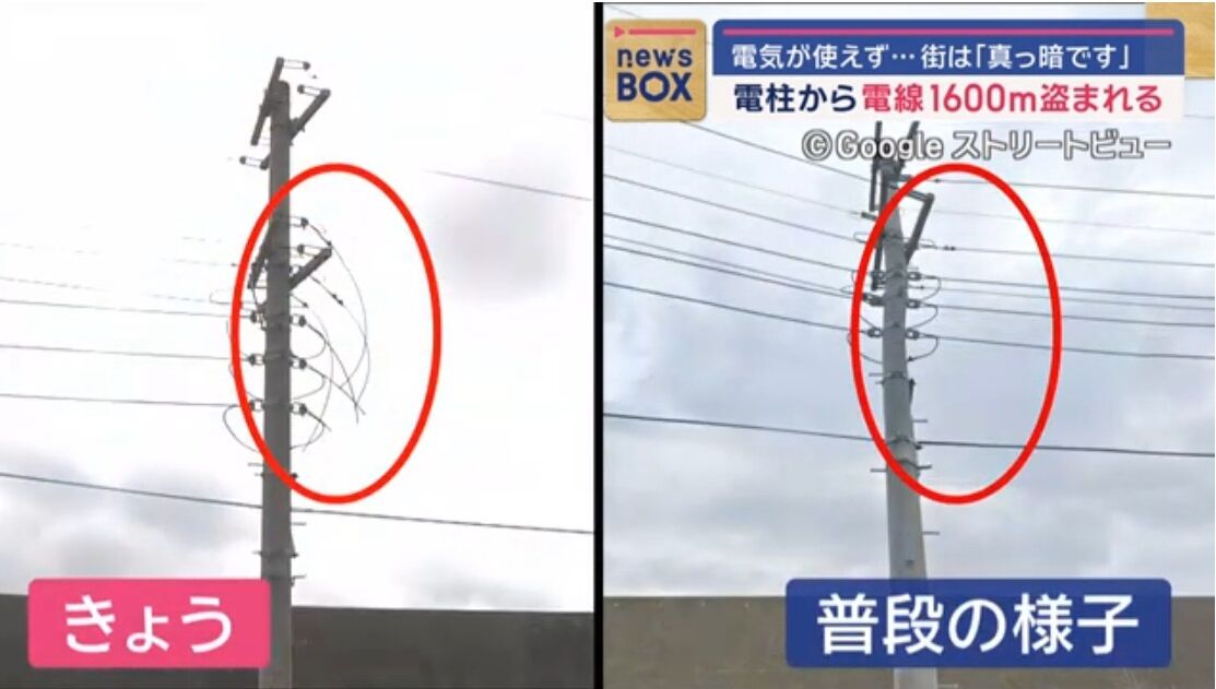 電柱から電線1600m盗まれる 電気が使えず…街は「真っ暗です」
