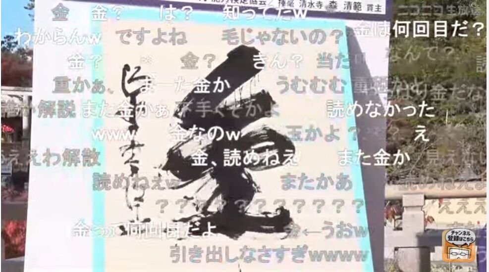 その年の世相を表す、毎年恒例の「今年の漢字」が12日午後2時過ぎに京都・清水寺で発表され、「金」が選ばれた。