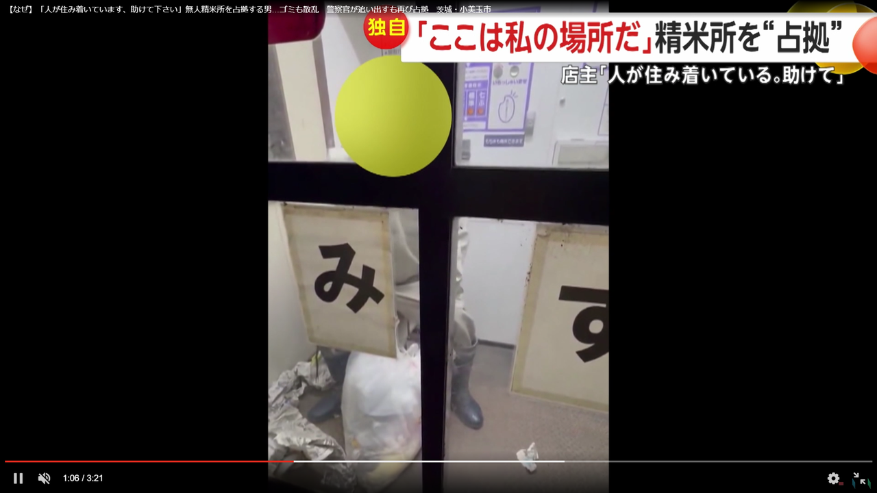 【なぜ】「人が住み着いています、助けて下さい」無人精米所を占拠する男…ゴミも散乱 警察官が追い出すも再び占拠 茨城・小美玉市