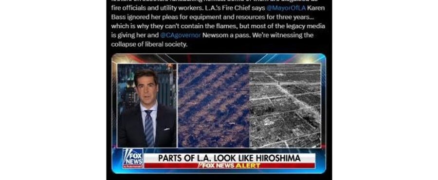 その焼け跡について、FOXテレビのキャスターが、原爆投下に例える形で「原爆を落とされた広島のようだ」と報じたことが伝えられている。