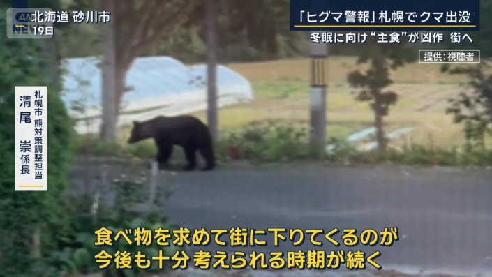 北海道の中心、札幌でもクマが出没しています。札幌市で初めての『ヒグマ警報』が出されている西区の小学校では、29に力集団での登下校が始まりました。今年はブナの実が少なく、冬眠を控えたこの時期、エサを求めて山を下りてくるクマが増えているといいます。