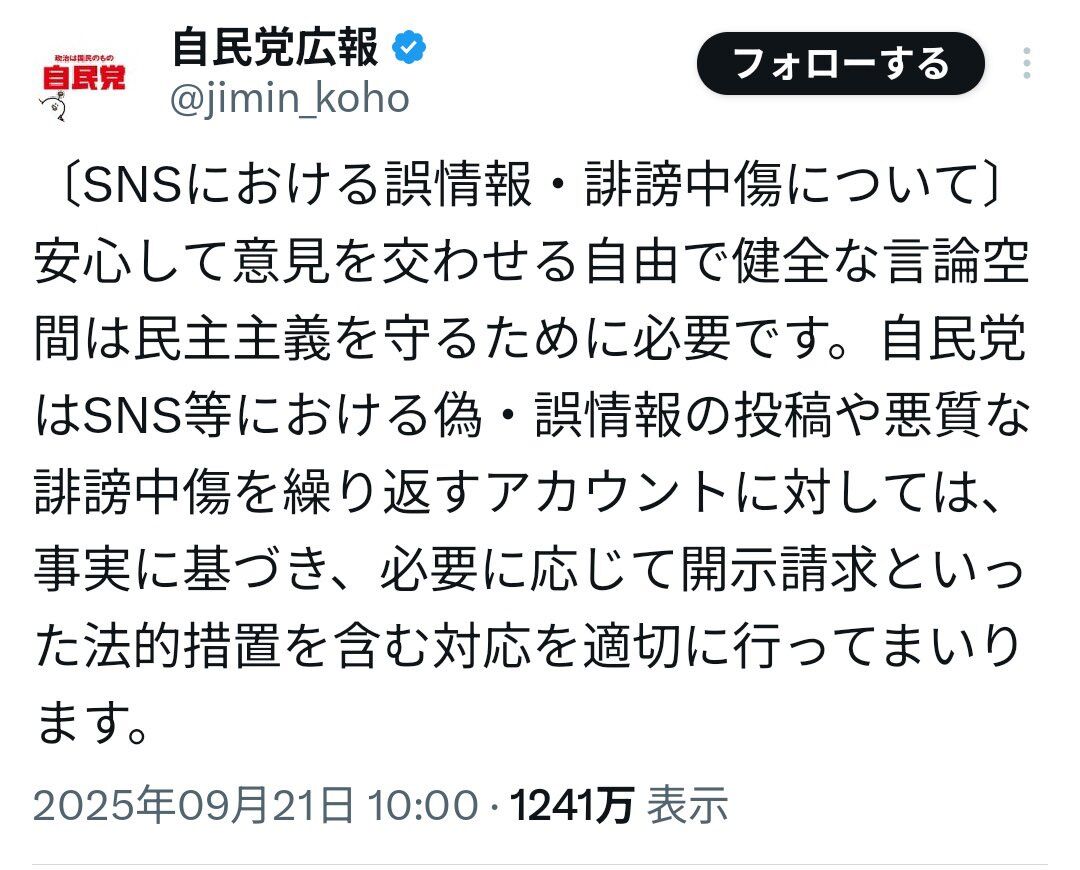 ステマしてるくせに誤情報を理由にSNS情報開示するぞと脅す自民党