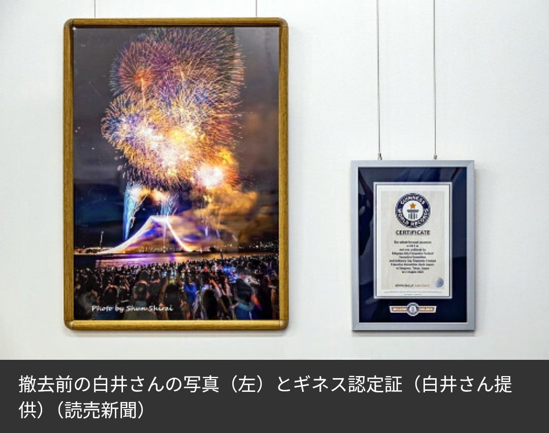 ギネス認定証とともに展示した花火写真、1件のクレームで撤去…写真家「納得いかない」
