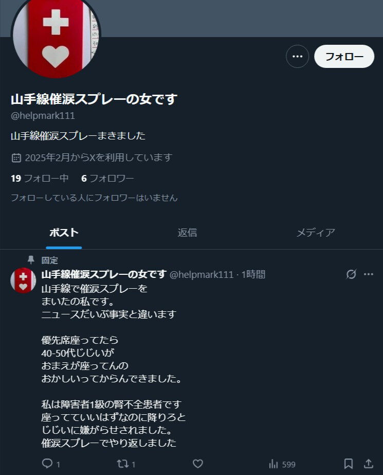 昨日見たテレビニュースでは、この女性が優先席の目の前に立ってた人を押しのけて優先席に座ったところを