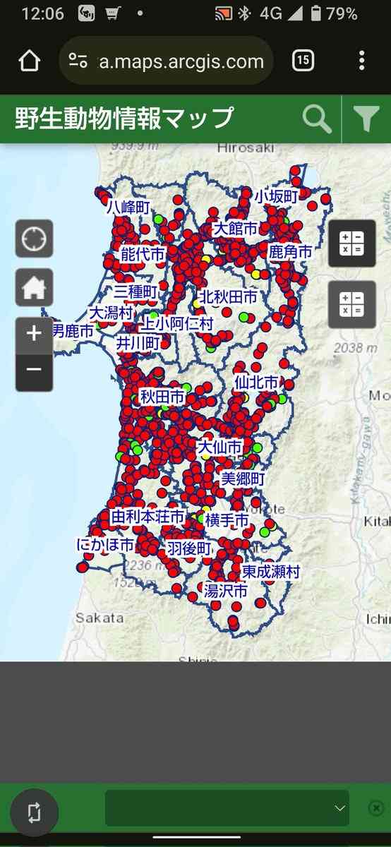 「メガソーラーのせいだなんだ言われてるけど、まったく逆。人口減少で人が住むところがどんどん山から遠ざかって、里山が原生林化している。森が豊かになって増えたクマが、人間の生活の場に近づいてるんです。人口1000人の村周辺に、2000頭のクマがいるようなところもある。県で作った目撃情報の一覧マップもあるけど、実際はあれの3~5倍は出てますよ。だって届け出するたびに警察の調書に付き合わされるんだから。毎日出るようなところはいちいち報告してられない」