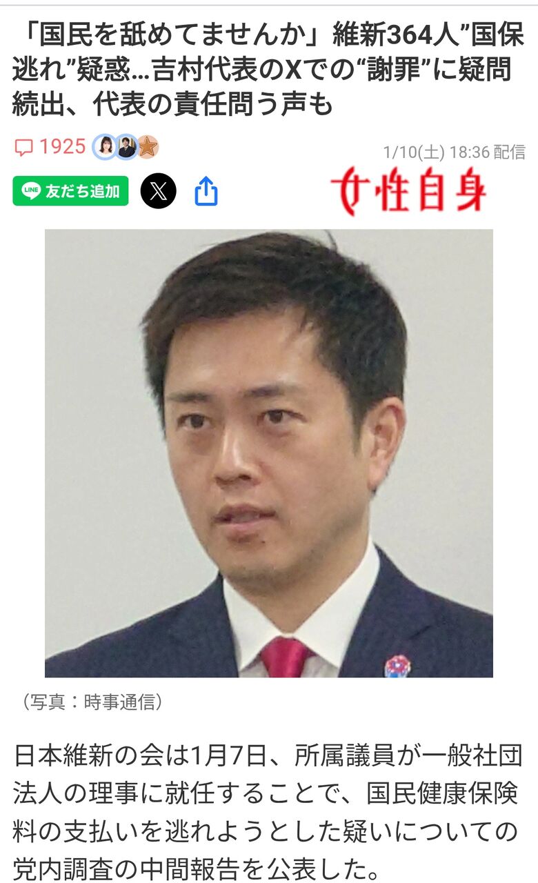 「国民を舐めてませんか」維新364人”国保逃れ”疑惑…吉村代表のXでの“謝罪”に疑問続出、代表の責任問う声も
