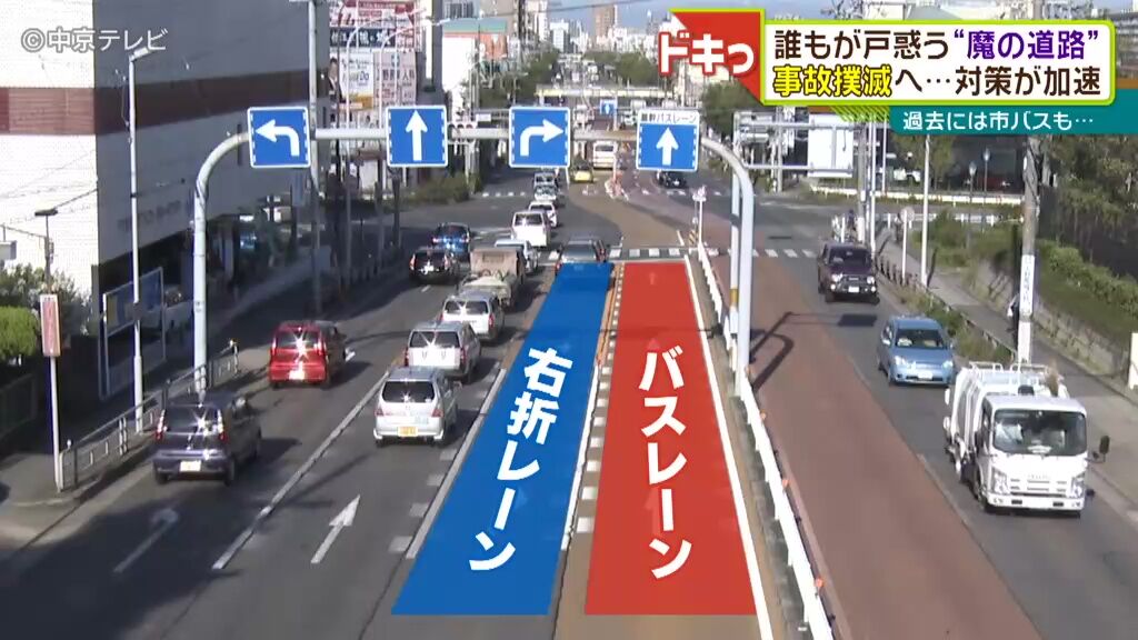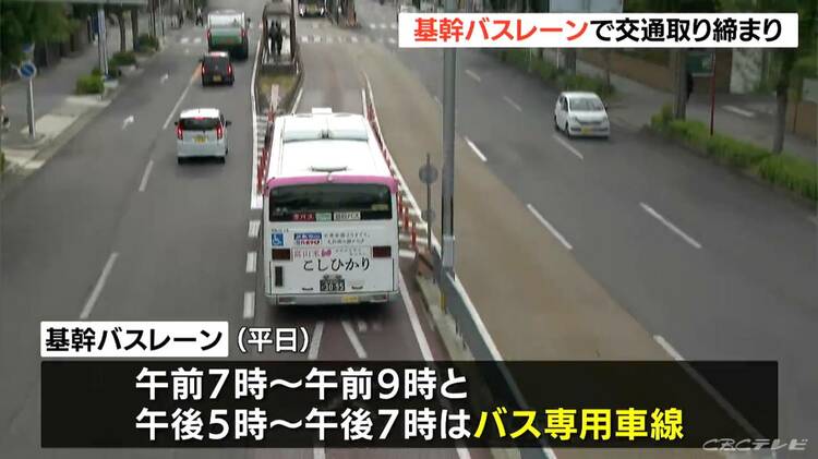 道路の真ん中をバスが走る、名古屋特有の「基幹バスレーン」で、通行規制時間中に走行した一般車両の取り締まりが行われました。100台以上を摘発です。