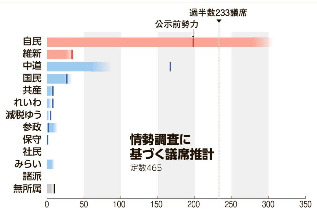 自維300議席超うかがう 中道半減も 参政・みらい勢い 朝日調査