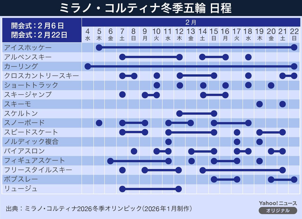 2026冬季オリンピックの開会式は、2月6日金曜日午後8時(日本時間7日午前4時)から、