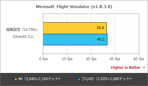 現在屈指の「重たいゲーム」として知られるMicrosoft Flight Simulatorで、描画設定を最高の「ULTRA」に設定してフレームレートの測定を行ってみた。なお、フレームレートの測定は、Daher TBM 930で羽田空港から関西国際空港へ向けてAIに飛行させ、離陸から3分間の平均値を取得している。