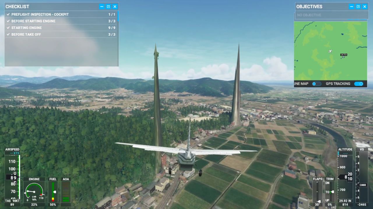 【動画】『マイクロソフトフライトシミュレータ2020』 佐賀県に不思議な塔 ・・・佐賀だけにはなわの頭の様だw