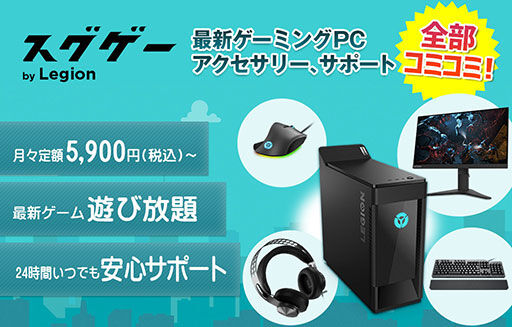 レノボ・ジャパン合同会社は、ゲーミングパソコンの残価設定型サブスクリプションプラン「スグゲー」の開始を発表した。月額5,900円より利用でき、利用期間は1年または2年。