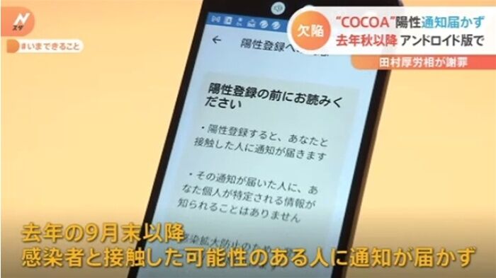 新型コロナウイルスの接触確認アプリ「COCOA」に不具合が見つかり、少なくともアンドロイド版で去年の秋以降、感染者と接触した可能性のあるアプリの利用者に通知が届いていないことが関係者への取材でわかりました。