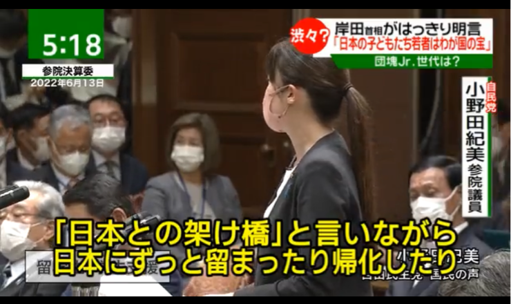 自民 小野田議員「(中韓人は)日本との架け橋とか言いながら日本に留まってる人が多い」 自身の選挙区では「公明票はいらない」宣言も